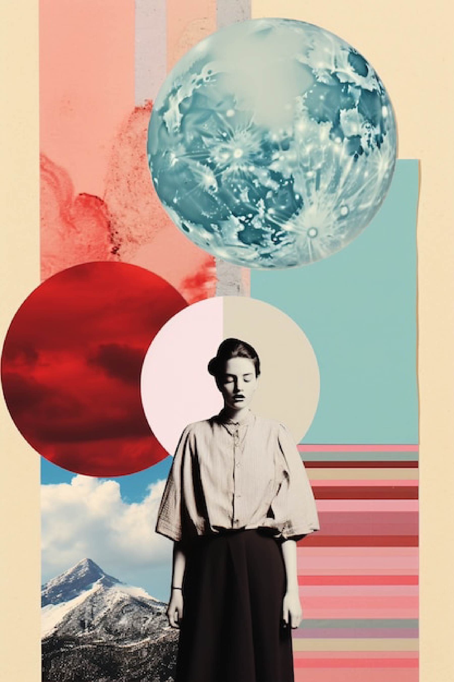 - Style: Surrealism, Modern Aesthetic, Geometric Collage